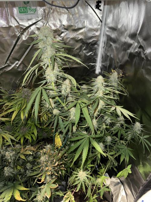 No issues with nutrient uptake; the current feeding schedule seems well-suited for this stage. Keep monitoring humidity and temperature to prevent mold as buds become denser. Overall, growth is on track and healthy, with an estimated potential yield beginning to form.