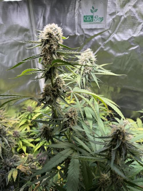 Nocone_Purple Epsilon F1 is still in mid-flower and currently feeding on Big Bud. The structure is tall and balanced with a very even canopy. Buds are starting to bulk up and get covered with trichomes. Still some way to go, but everything looks healthy and vigorous. Will switch to Overdrive next week to boost flower density and resin production.