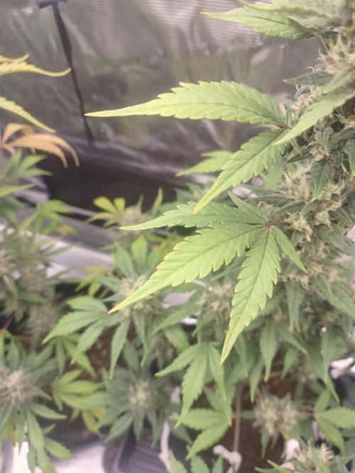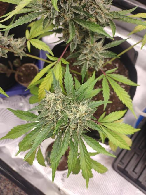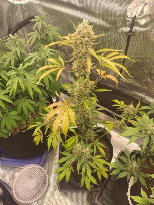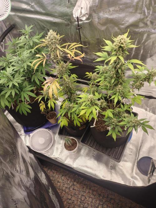 So was going to feed/water, water/feed these girls last night but I think another day will be better. Pots still a bit heavy and damp down below. So when I get off theyll be good to go. I'ma up the TB, add about 60ppm grow big. I mean just a touch. I'm conflicted a bit but Im still going to do it. Is it too late now? Will it save the ones left, or slow down the Process. Most likely that train she's a rolling and it probably won't matter. So far I've enjoyed the auto flowering varieties. I really like not losing access to the grow room for 12 hours a day. That is a major pro. But these 2 weren't very fussy. I have 5 more of the cheese variety that I'll pop all at once one day. Which I had a bit more room and few more dollars (for the utilities) to set up a couple more tents. Living life one harvest at a time leaves a lot to be desired.
