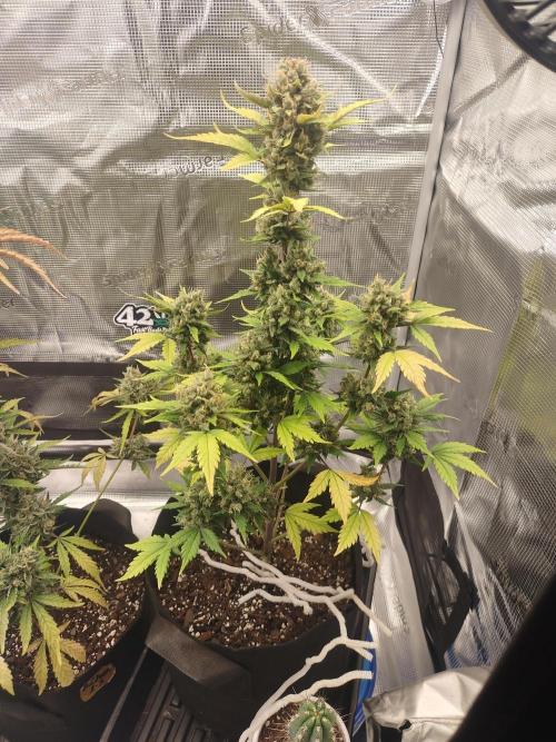 Doing well. Buds are swelling. My EC is double what it should be but I'm not seeing any evidence of toxicity yet. I have some sledgehammer coming in today and they will probably get a "light reset" tomorrow. Trying to bring them down to ~1.3, 1.4 down from 2.5 and 2.8. Looks like I'm making the right decisions so far (can't believe I just put that in writing ) the plants aren't getting any nutrients from the "uncooked" organics in the soil. And either way the salts I've been using is killing off the herd. It has to be one way or the other, and since the breakdown is t keeping up with the needs of the plants. I have to provide that bridge.
