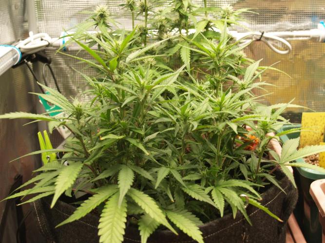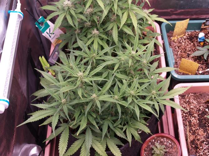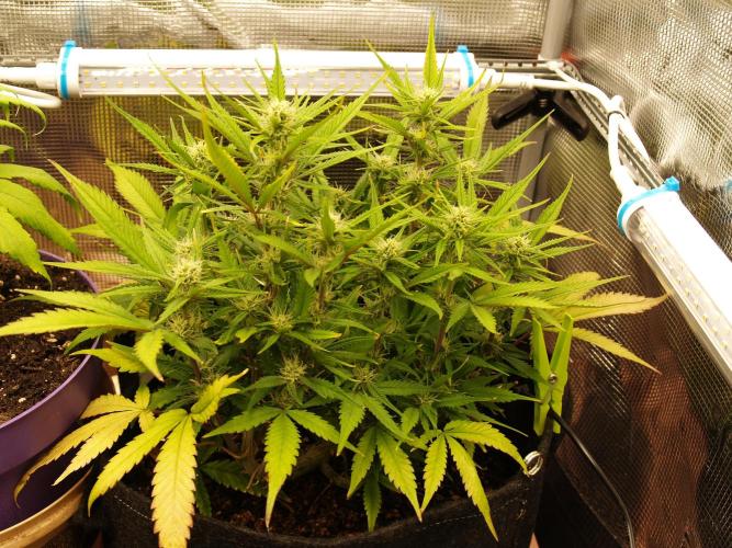 -Tag 46 Sie ist nun in Richtung Blütephase gegangen, sie hat heute etwas Wasser mit Effektive Mikroorganismen bekommen und sie war beim Friseur 😃😍