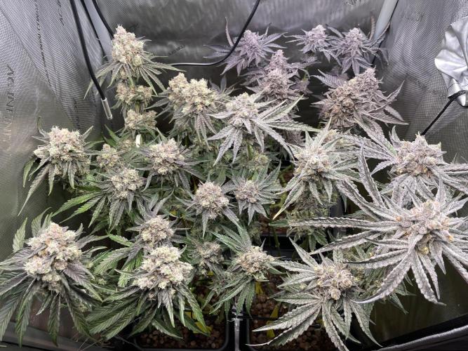 Schade aber sie sind ja fast fertig. Ich würde dir jetzt sofort zu mehr airflow raten da mit 53% rh nur das der Grund sein sollte aber bei Growzelten unter 80x80 ist es einfach schwer das gut hinzukriegen ohne die dann zu stark anzublasen was dann wieder andere Probleme verursacht. Und ein Luftentfeuchter wäre auch nicht so einfach. Der Spiderfarmer den ich habe bläst stärker entfeuchtete Luft als mir lieb ist da ich meinen Prima Klime mehr aufdrehen muss damit sich das Zelt nicht aufbläst und den AKF überflüssig machen würde und ich in Blüte das ganze Haus vollstinken würde. Am Ende hast du das richtige gemacht. Ich freu mich schon auf den Erntebericht, Smoke Report und Terp Geruch und Geschmacks update.
