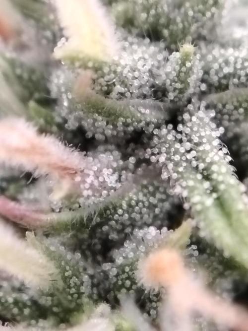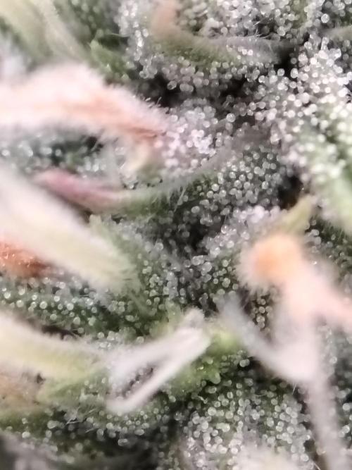 -Tag 55 Wir haben begonnen, die Trichome zu kontrollieren, und es sieht so aus, als ob sie sich dem Ende nähert, bald können wir sie ernten. Sie hat heute etwas Dünger bekommen 😘