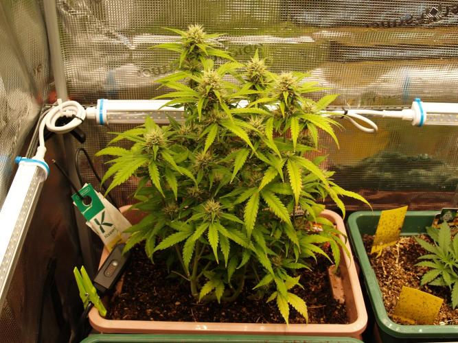 Düngemittel: mineralischer Dünger NPK 7-3-5 . Ab Tag 21 mineralischer Dünger NPK 10-4-7 und Plagron Power Buds. Ab tag 37 Canna PK 13/14
