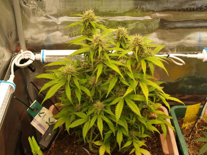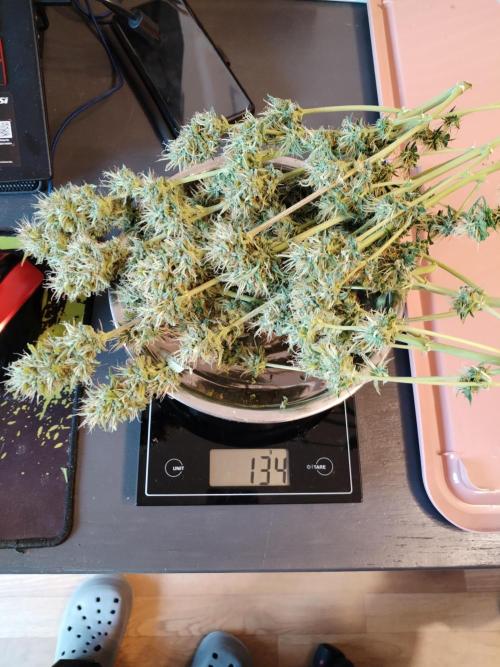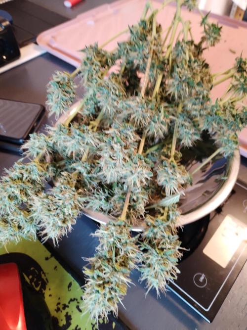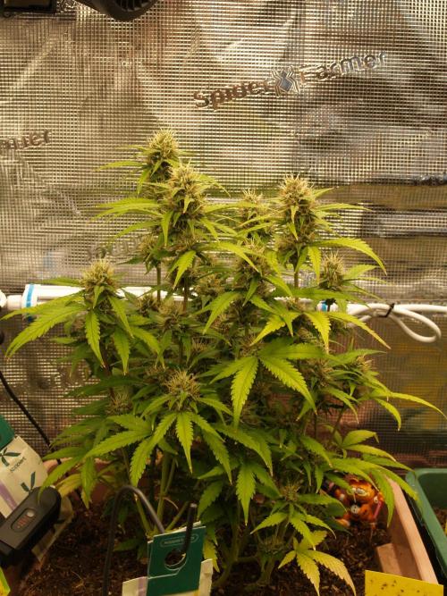 All_our_small_plants Wir haben sie nach 58 Tagen geerntet sie hatte schon alle Trichome Milchig und ihre Härchen sind fast alle Braun/Orange, Wahrscheinlich war es zu warm im Zelt und das Verlangsamt das Wachstum. Jetzt im Winter wird es sicher besser, und die Pflanzen haben weniger Stress