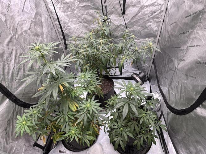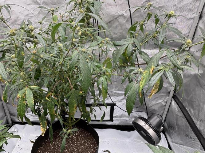 lov3m3mor3 This was a stressful week for the girls. I bottom watered and shortly afterwards the bronze patches started appearing. I think that’s a deficiency related to using garden lime as a ph balancer, and not burn. Also the DIY fungicide made the mildew spread. Never doing that again. For PTK junior, she has been the worst affected by the mildew. Gave her a haircut to clear out affected foliage, and found bud rot… so what remains is what is unaffected so far. I went into the grow shop and asked some questions. I was looking for a fungicide, ended up with concentrated citric acid which can be used as an insecticide as well and is safe for application during flowering. BUT it can only be applied at night because the light and heat will cause it to burn the plant, and I have to mix it fresh every time I apply. My area has very wide ranges of temperatures in autumn between night and day. This causes an increase in condensation on some surfaces, and therefore mold or mildew. I am budgeting for a dehumidifier; in the meantime, I’ve reduced my light from 100% to 50% as that will reduce the day temp and I’m also turning the inline fan on blast at all times.