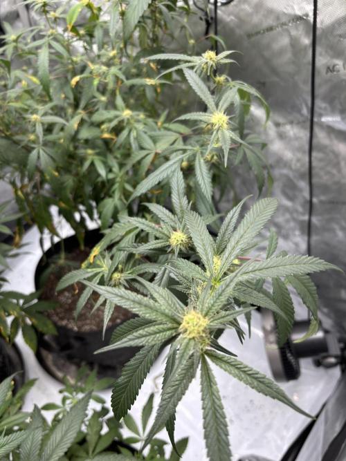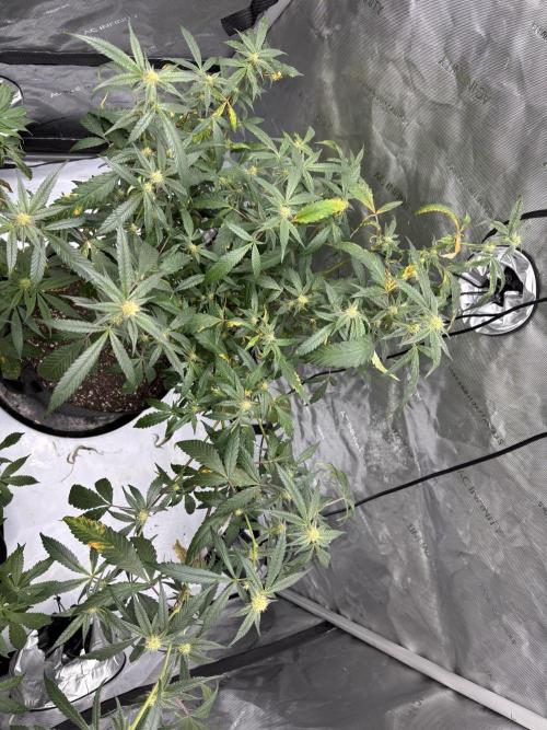 lov3m3mor3 Defoliated a tad last week. I now understand why people don’t normally reveg plants, and it’s because it takes way longer to regrow those large fan leaves than it does to just start from scratch. that being said…. she’s in a tent with other plants and I was planning my switch to 12/12 for today… so I guess I’ll see what happens. My next run I’m growing pine tree kush from seed (as opposed to my accidental beautiful cursed clone baby). She’s on water only for a week and we’ll see how she handles things.
