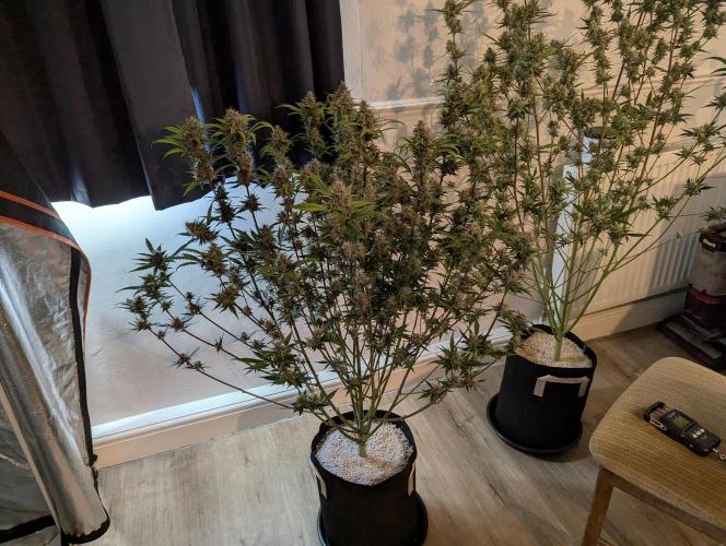 Wow the tall plant shot up even more so much so that ive had to tie the plant down a bit so the top is not burning as only maybe 3 inches away from the light which ive had to take it of the ropes and attached direct to a cross pole and my tent is 1.8 meters tall !!