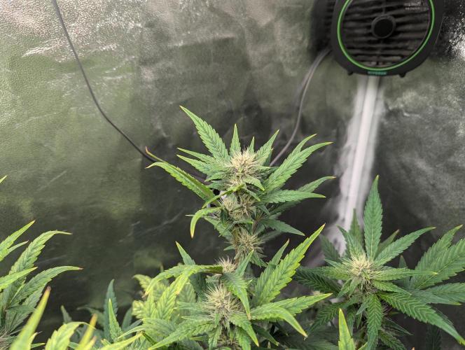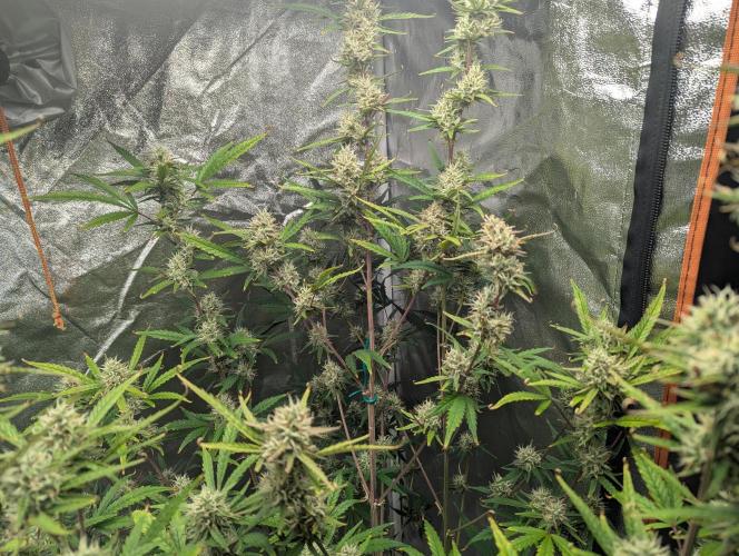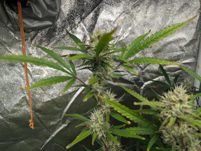 Wow the tall plant shot up even more so much so that ive had to tie the plant down a bit so the top is not burning as only maybe 3 inches away from the light which ive had to take it of the ropes and attached direct to a cross pole and my tent is 1.8 meters tall !!