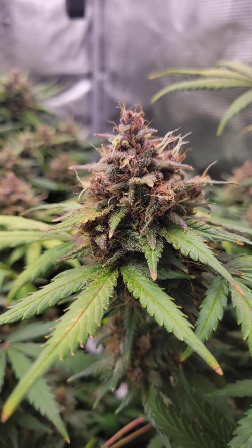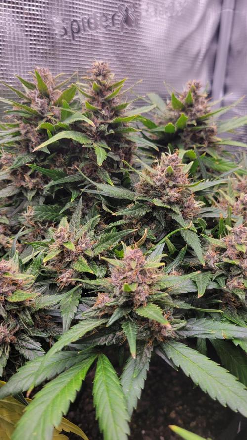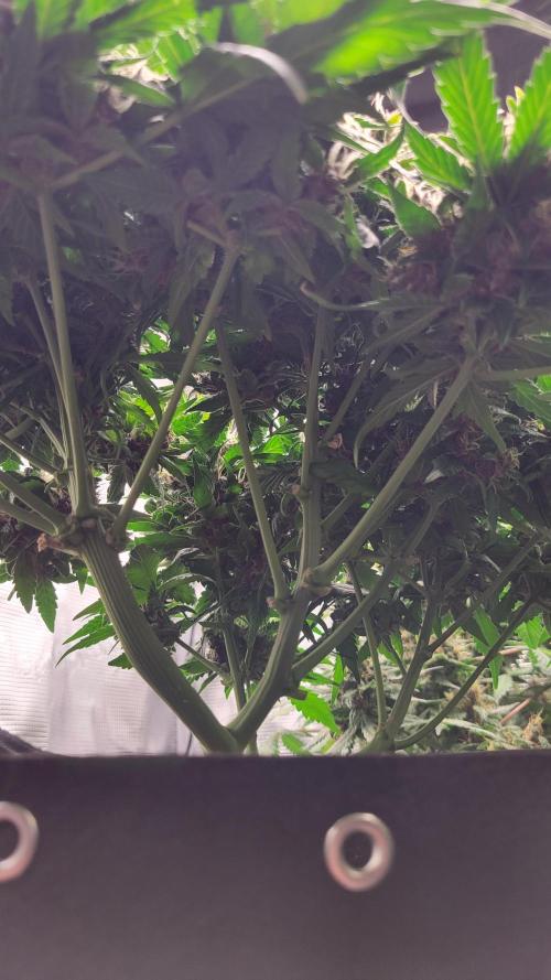 CellarDweller Day 70! They smell amazing! For my first grow it went pretty smooth. I know where i failed and what to do next grow. Def gonna defoliate more aggressive. Theres a ton of larf on lower branches i could have removed and allowed plant to refocus on main buds. The polyploid looks like it could go a week or more longer than the other 2. Trichomes on normal looking plants are cloudy clear very few amber..but i dont like couch lock..gimmie that sativa high baby!!! Will harvest soon i hope!
