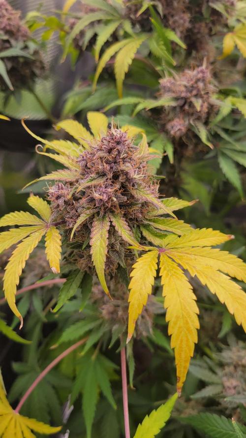 Trichomes are clear and cloudy no amber yet. They smell amazing! Grape, berry, and diesel its mouth watering..it is my favorite combo of flavor i cant wait. The colors are beautiful the yellows and reds so this where i am..fastbuds says this strain is ready 8-9 weeks so im pretty close i think ill harvest around day 75 if the trichomes are ready ofcourse!