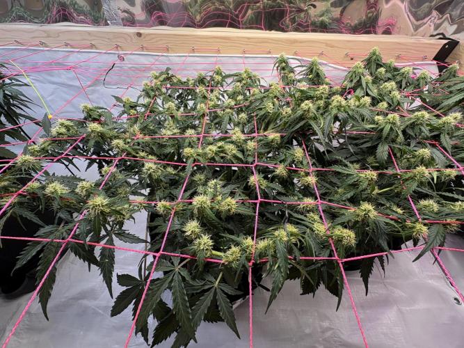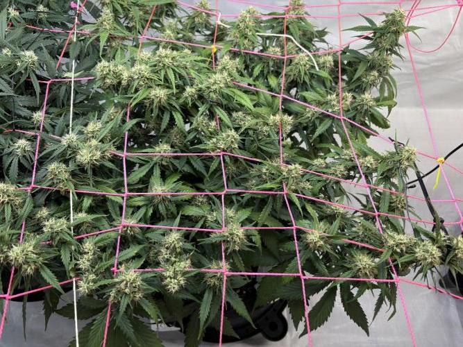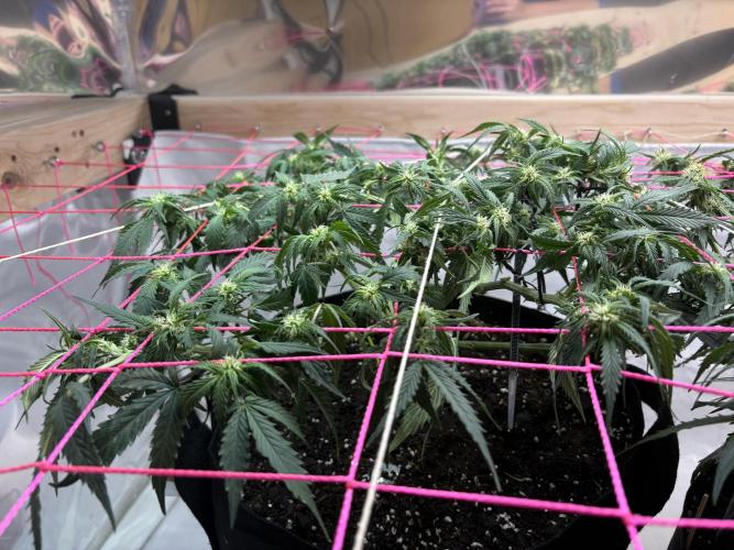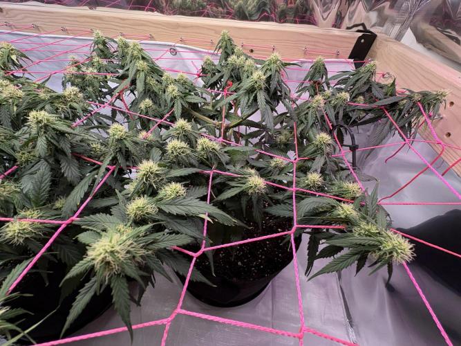 All seem to be flowering now 🙂 Plant A was still only 10” tall, so I raised it up to meet the netting. I spent a lot of time tucking all plants this week to ensure the light can get to every bud site. Seems to be going well! I’ve been seeing some drooping on all plants, and I think it’s heat stress/watering issues. I’m now trying to keep temp lower than 78F and am dialing in watering amounts/frequency. I am glad I invested some money in a light meter this time! It’s really helped me with light level/height/intensity/ etc.