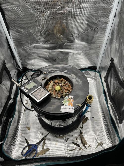 Still_Smoq Germination Week, 1-7 August 2025 1 Aug - Placed 3 seeds in a cup of RO water, put in seedling grow tent under 24hrs light at 25% power, temp 74 degrees F. 3 Aug - 3 seeds cracked, roots appeared. Placed into Root Riot starter cubes. 5 Aug - All 3 seeds sprouted from starter cube. Waiting for some roots to appear from starter cube before moving the best seedling to a permanent DWC system (see pictures). 6 Aug - Selected and moved best seedling into DWC system. 7 Aug - Let the seedling grow. Thank you Divine Seeds! I’m very excited to be a sponsored participant and given the opportunity to cultivate during this years 2025 Global Autoflowering Competition vol.2! The strain I received was Auto Black Opium. A tremendously potent Indica with shocking resin production rate and delicious berry aroma. Flowering time: 60-63 days, THC: 25%, Harvest: 800-1000 g/m2, Height: 130-165 cm. The Plan - use a Deep Water Culture, 3 gal system, as a permanent home. Apply a weekly feeding schedule using time tested blends of Terra Aquatica (formerly General Hydroponics), Botanicare, and Europonics nutrients throughout the cycle. My forecast is this grow should be finished around the end of October 2025. - Using RootRiot starter cubes - Using reverse osmosis water with EC/TDS at 0 - Light power at 25%, DLI 10 at 24hrs That is it for this week. Thanks for the look, read and stopping by.