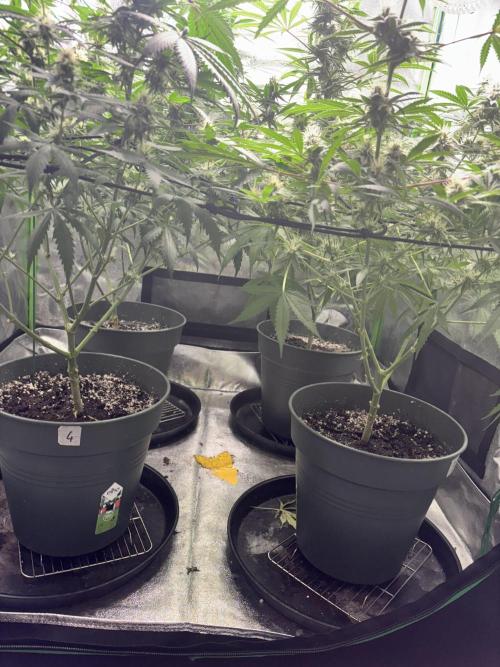 No 3. The one in the back right, had the lower leaves showing either a potassium magnesium deficiency. I added some Calmag obce to the watering and I keep monitoring it. I only worry because I never had one starting showing yellowing dried leaves so early in flower.