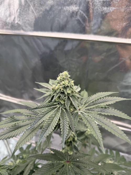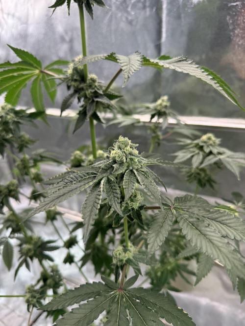 Thomas_Shelby The bud is already starting to form its final shape, the trichomes are still transparent. Unfortunately, tow of the bushes fell and broke, along with a couple of other plants :( Only one remain