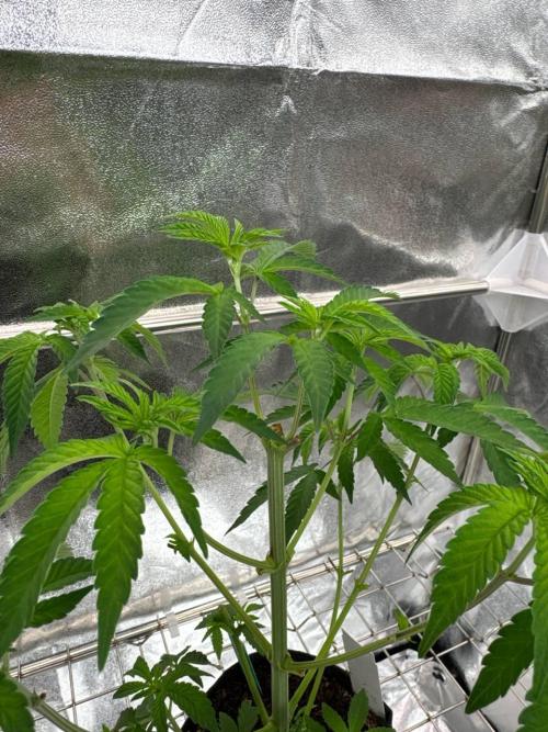 Adri_Grow The bush is developing normally. I topped and de-leafed it to expose the main branches more. The plants are a bit stressed after these procedures, but I think they'll recover in a couple of days