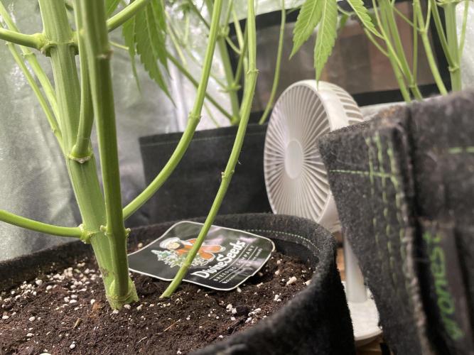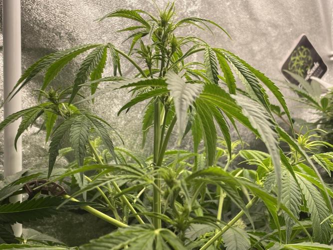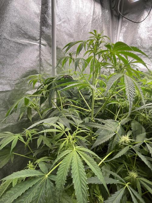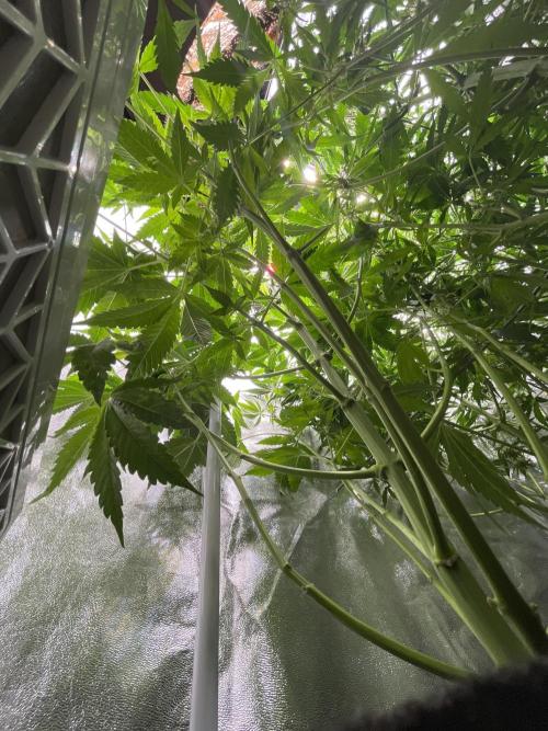 • Applied selective defoliation of lower fan leaves to improve airflow and light penetration. Current LST expansion limited due to available growing space.