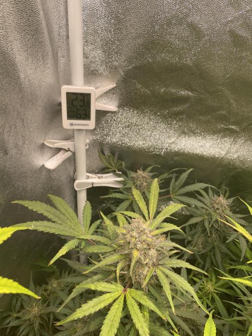 Day63:• Heavy defoliation with ~20 days left to harvest - pushing energy to the buds and reducing humidity