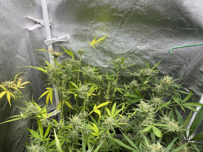Day63:• Heavy defoliation with ~20 days left to harvest - pushing energy to the buds and reducing humidity