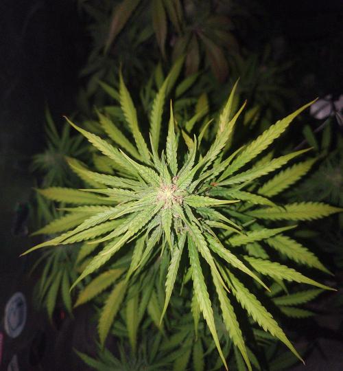 Chrisandweed tercera semana de vegetativo. Una semana menos que las otras autos. Desde su germinación las hojas han tenido movidas raras, decoloraciones, rayas, etc.. yo creo que por mutacion o problema de la semilla, ya que ha pasado exactamente por los mismos procesos que las demas semillas y es la unica rara, también he de decir que es una de un pack de 12, por lo que no me extrañaria que el propio roce entre ellas ya les cree problemas de futuro pero bueno... En general la planta se ve muy bien, tonos verdes quizás demasiado claro pero se va corrigiendo, lo importante es que la salud debe irle bien ya que ninguna termina de ceder a plagas.