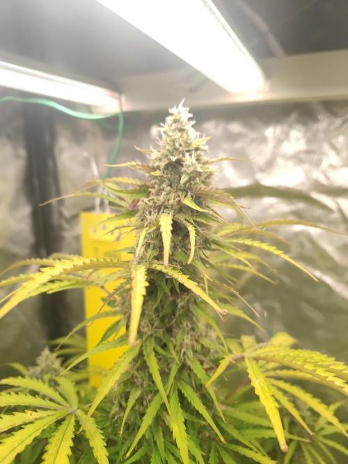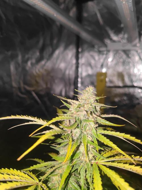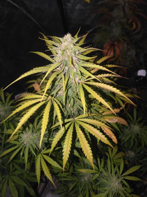 Chrisandweed Que monstruo! Y aún le queda por engordar bastante! Le quedará diría que un mes para el corte pero joooder que monstruo! Jajajajaja los cogollos laterales son como las copas de las otras mas pequeñas jajajaja y el olor! Huele fuertisimo! Además el olor es literalmente un concentrado de frutas y azucar a partes iguales, olor suuuuuuper frutal y suuuuper dulce, no huele a cannabis!