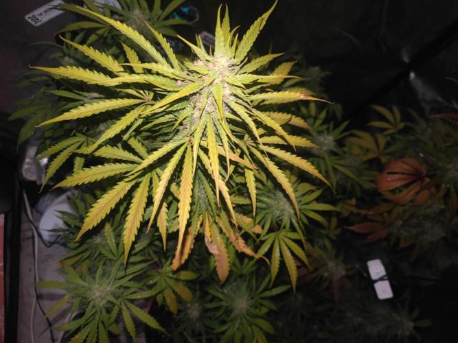 Me preocupa el amarillenteo de las hojas dado que con el tema fertis he procurado ir siempre justito y aparentemente me quede un poco corto en un par de riegos pero bueno, ya aparentemente está bien la planta, aunque nunca mostró estres directamente, y ahí va, bien alimentada, que debido a eso, la voy a seguir fertilizando esta semana y ya la siguiente se acabo, solo agua y a chupar de las hojas.