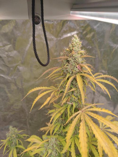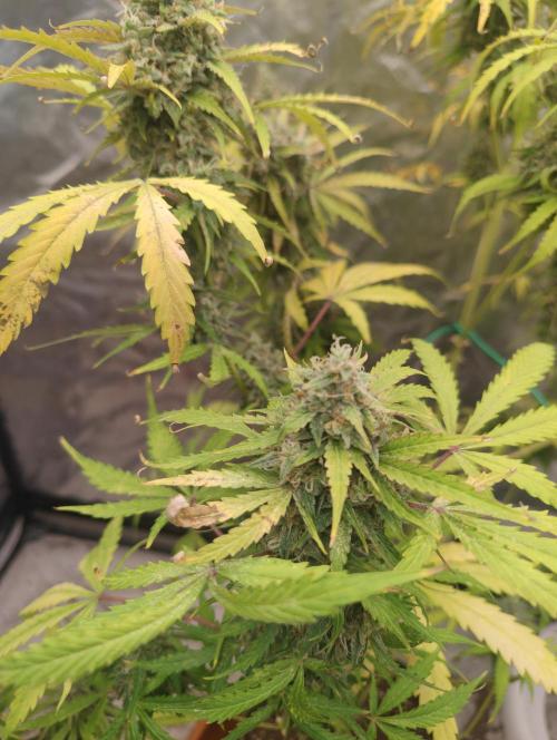 Chrisandweed A ver, la planta va muy bien, crece muy bien, tragando agua sigue igual, al mismo ritmo, cada 2 o 2 dias y medio le hecho sus 3 litros, y a veces riego con 7 para que drene algo. Ahora bien, el amarillo... ¿Porque está tan amarilla!?