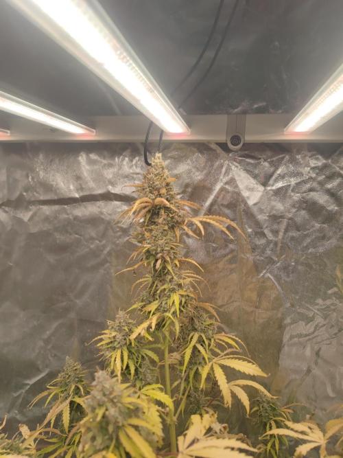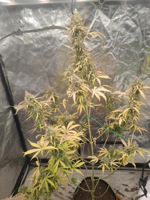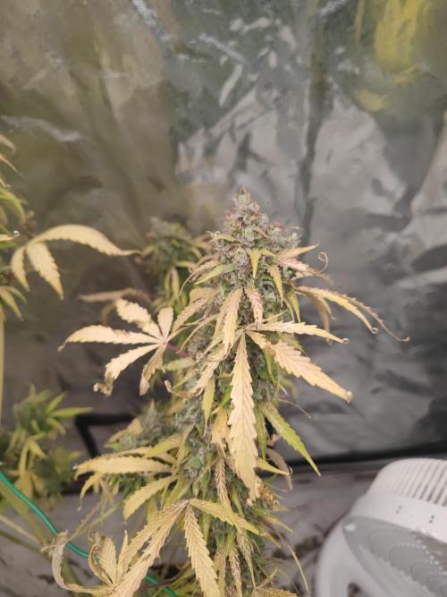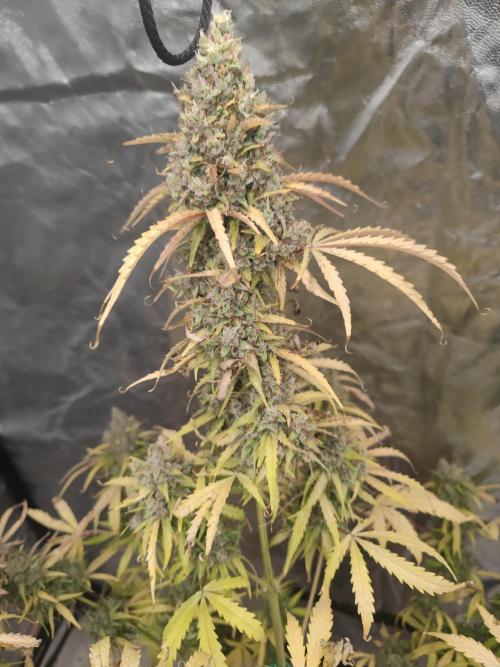 Chrisandweed Que monstruo! Y aún le queda por engordar bastante! Le quedará diría que un mes para el corte pero joooder que monstruo! Jajajajaja los cogollos laterales son como las copas de las otras mas pequeñas jajajaja y el olor! Huele fuertisimo! Además el olor es literalmente un concentrado de frutas y azucar a partes iguales, olor suuuuuuper frutal y suuuuper dulce, no huele a cannabis! Me preocupa el amarillenteo de las hojas dado que con el tema fertis he procurado ir siempre justito y aparentemente me quede un poco corto en un par de riegos pero bueno, ya aparentemente está bien la planta, aunque nunca mostró estres directamente, y ahí va, bien alimentada, que debido a eso, la voy a seguir fertilizando esta semana y ya la siguiente se acabo, solo agua y a chupar de las hojas.