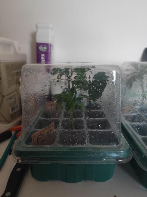 Germinada en tupper, pasada a jiffy en propagador y una vez habían cotiledones pasado al armario con humedad medio alta