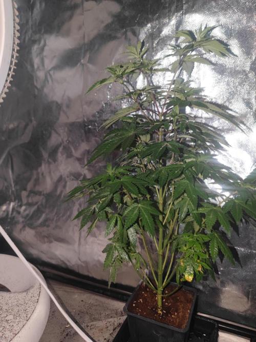 Todas las femis han reaccionado muuy bien al corte apical, no hubo señal de repentización muy aguda y todos los brotes tiran para arriba.. la intención será hacer transplante, que recupere, segundo corte apical a todas las puntas para igualarlas en altura y seguramente me ponga una red scrog casera que me hice (ocupa no se si era 1x1 o 1.2x1.2 metros)