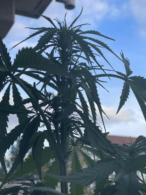 Northern Lights #2 was gradually moved to balcony location and exposed to natural sunlight. Plant has successfully acclimated to outdoor conditions without stress or adverse effects.