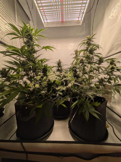 Die Pflanzen entwickeln sich weiterhin normal. Eine der AKs ist deutlich weiter als ihre Schwestern – sie war schon früh in die Blüte gegangen und wird bald erntereif sein, während die anderen noch etwas länger brauchen werden.