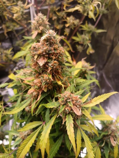 Fisseb I have cut off the main bud as there was a little bit of mold. Didn't look like the typical bud rot, or mildew. other than that smell is great and she#s probably ready any time soon