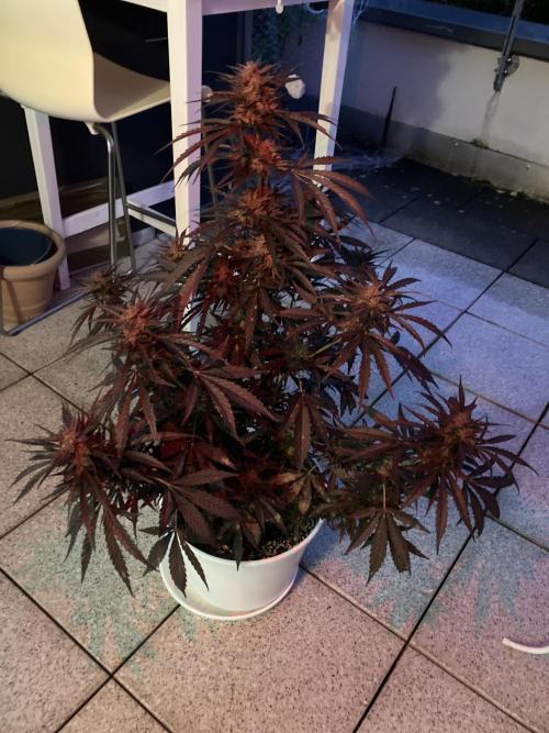yun23 Should I harvest it maybe.. Will do it on Monday or will let it grow one more week. It turned purple and looks beautiful 💪🏻👍🏻Really good strain to grow