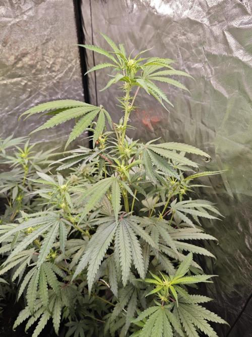 Pot_Portraits Flower week 2 ! She is doing amazing, tallest plant in the tent, she is much happier now with lower water moisture levels.
