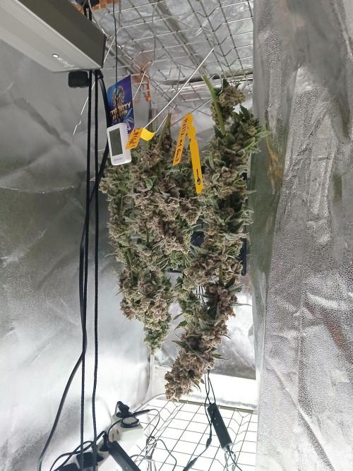 Caertner Das mit dem Urlaub hat astrein gepasst. Musste nur die Blüten zusammenbinden, damit es die Äste nicht knickt. Der Stretch ist schon Hammer bei der Genetik. Sind gut 40-50cm senkrecht nach oben, das gibt Hebel.