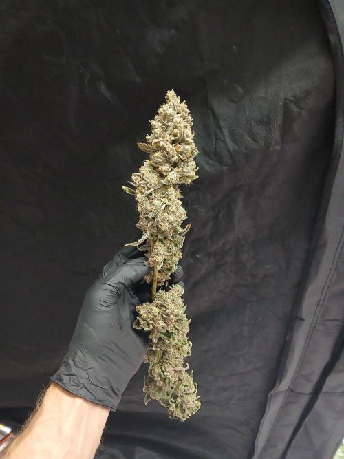 Caertner Das mit dem Urlaub hat astrein gepasst. Musste nur die Blüten zusammenbinden, damit es die Äste nicht knickt. Der Stretch ist schon Hammer bei der Genetik. Sind gut 40-50cm senkrecht nach oben, das gibt Hebel.