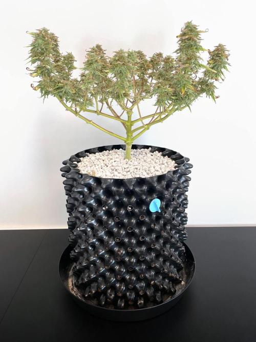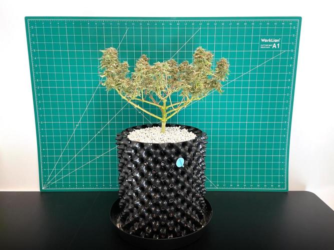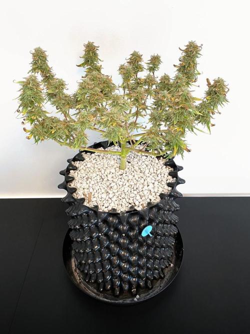 This week, I'll break up the soil to inspect the root mass. I half expect to see that the roots didn't fully populate the air pot. We shall see. That's a bit of an ongoing problem I'm having as I learn to grow autoflowers (with or without a grow diary). For one thing, I have to be more careful about overwatering. I know that much for sure. Second, I wonder if transplant shock is sometimes a culprit. I've had both good and poor results with plants I've transplanted, so I know it's possible to do it carefully enough. I've recently started trying fabric pots, so we'll see how that goes. I'm also going to try direct-in-the-final-pot sowing on an upcoming plant. I've done that before, but found it difficult to get the watering right, which is why had switched to transplanting them. That being said, when I've started them in air pot 1-liter propagation cells, they have always done fantastic while they're still in that starter pot, including great root development.