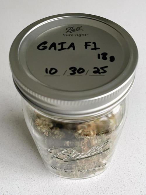 I chopped the Gaia F1 on day 77. For a variety of reasons, it went through some stress on its way to harvest. While I wish it had yielded more, it did perform noticeably better than a different plant that grew alongside it and received very similar treatment. For that reason, I can give it high marks. The buds smell very nice, with hints of citrus, mint, and pine. After drying, curing, and adding a smoke report, if anything stands out I'll adjust the rating accordingly.