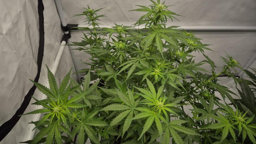 * Zustand der Pflanze: Kräftiger Blütestretch, erste Blütenstände sichtbar.