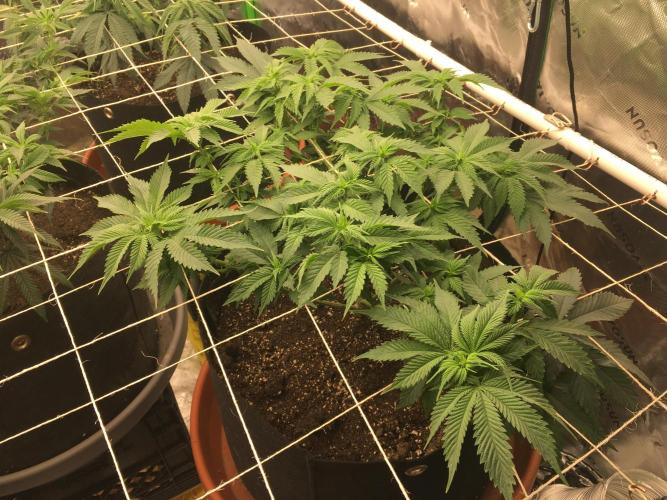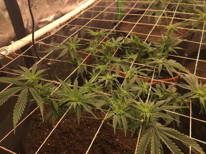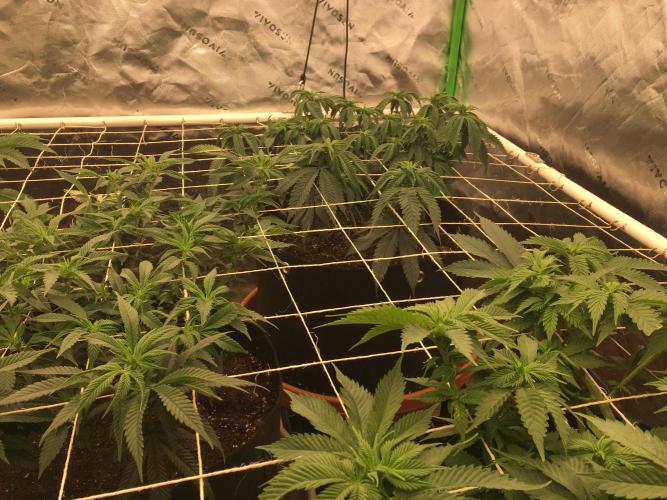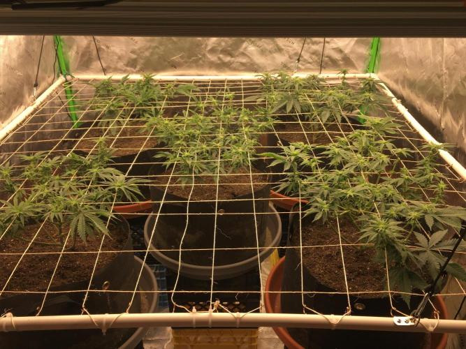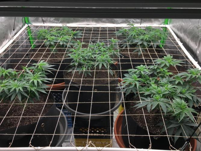 Ph_cubed Day 56 - Week 8 Fri - 3/10/25 Veg Album of the week: Porcupine Tree - In Absentia The ladies got a big trim last week. Growing back nice. Still a little low on nitro. I installed the frame but I have not lowered it into place. Honestly, the Ricky's is hella short, would probably be better SOG. Not really thrilled with the size of the plants, typically means a low yield. The stalks are super thick though so I am expecting big nugs, if not many. Wondering if I did something to stunt them since I see big trees of this online but the WW is doing great and it got the same treatment, if not worse. I plan to flip in 2 weeks but we'll see how the trellis looks. I will go longer if I have to but I also do not know what to expect with stretch. Will probably lower the trellis this week although it will be lower than I like. Using a pump sprayer to water is essential in these situations.