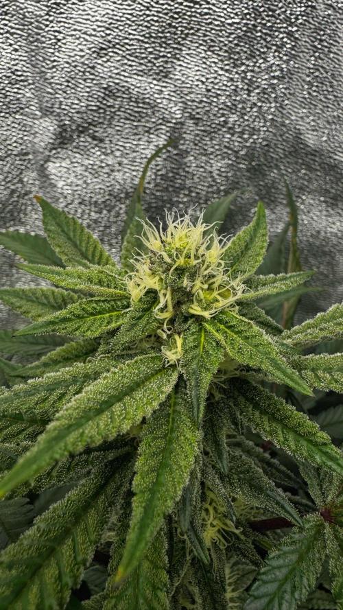 baphomet_botanica Doing great! She’s rapidly developing buds. Leaves also started to get frosty. Had to do a hard defoliation on Day 20 flower.