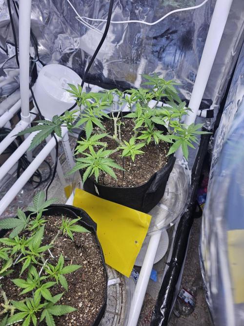 Trained and fed 1gallon water with recharge and f!sh sh!t and silica. Topped 4 of the tops on the 2nd plant will let 1st plant grow a bit before topping.