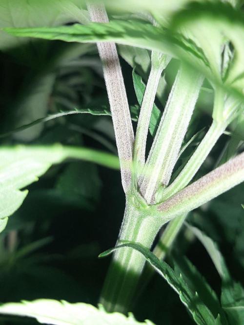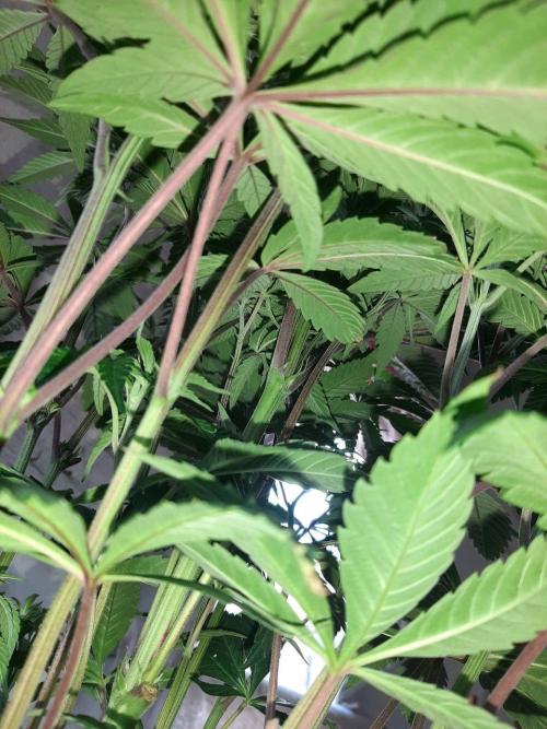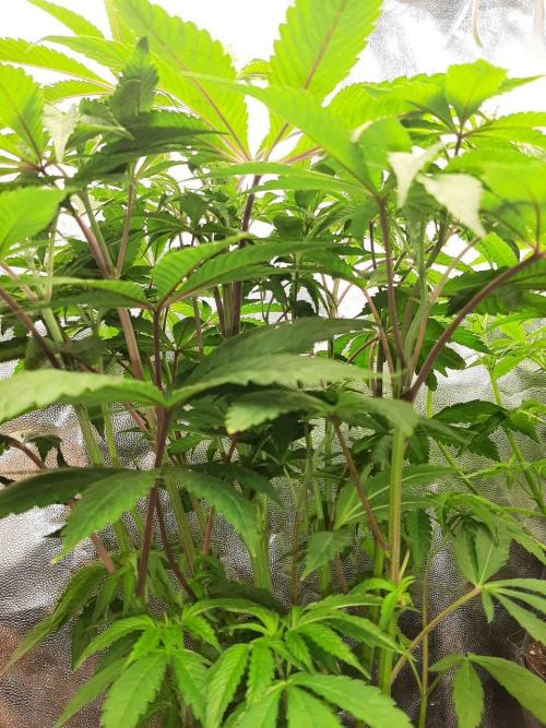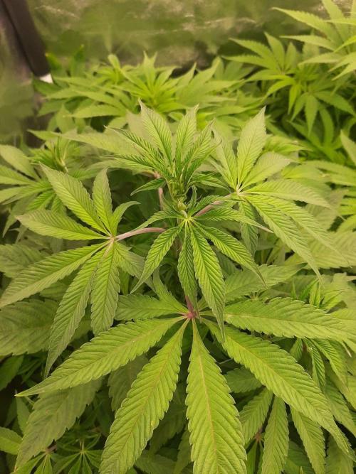 THEFROZEN710 Everything returned to normal with these girls. They recovered from a possible Mg overdose. They were all drinking pure water with a pH of 6.5, gradually increasing it to better absorb certain nutrients in their flora. There was no plan to add any mineral salts. I noticed an excellent response from them with the application of a biostimulant rich in enzymes, amino acids, and some algae and fish flours. It's important to understand that it has no nutritional effect; it merely causes mild, controlled stress and helps the plant metabolize faster and more efficiently. I took the opportunity to take out some clones of the most promising phenos and several Pure Glitter clones. I have the impression that I may have pulled a rare gem compared to other colleagues who received these same genetics and had no results. Many even killed their plants before flowering to save space. So, I've never seen a harvest from this genetics, and it is showing signs of anthocyanins in the veg.