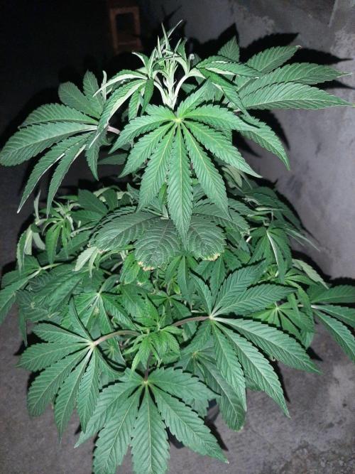 THEFROZEN710 It's almost hard to tell I'm in winter; my tent easily hits 26 degrees Celsius. But this week marked my first topping pruning. First of all, I'd like to say that I'm against interfering with a plant's natural growth; I like to respect it! But here I had an unusual situation: since I only have one Pure Glitter pheno, I decided to top it to increase my chances of getting clones of this very fragrant pheno. Every time I touch this plant, it leaves a unique scent on my hands. I'm certainly anxious and very excited for this plant's flowering. I confess that for my first topping, I don't know if I did it correctly, but I can say that this cut hurt as much as my last 10 surgeries.