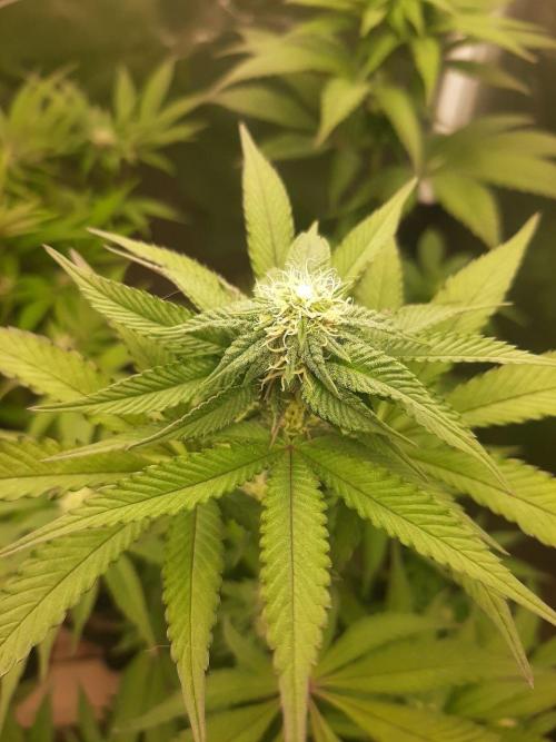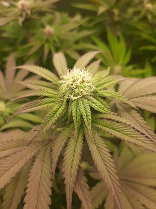 THEFROZEN710 It's almost hard to tell I'm in winter; my tent easily hits 26 degrees Celsius. But this week marked my first topping pruning. First of all, I'd like to say that I'm against interfering with a plant's natural growth; I like to respect it! But here I had an unusual situation: since I only have one Pure Glitter pheno, I decided to top it to increase my chances of getting clones of this very fragrant pheno. Every time I touch this plant, it leaves a unique scent on my hands. I'm certainly anxious and very excited for this plant's flowering. I confess that for my first topping, I don't know if I did it correctly, but I can say that this cut hurt as much as my last 10 surgeries.