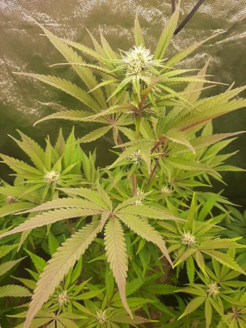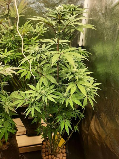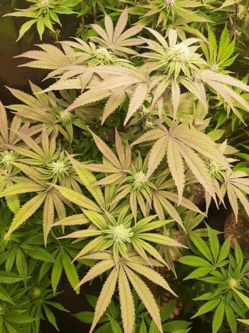 The first two days of flowering were difficult because the end of winter reached 35 degrees Celsius inside the tent. Some Bakers showed slight heat stress, the GMOs much less so, and Pure Glitter gave me the impression that she liked high temperatures.