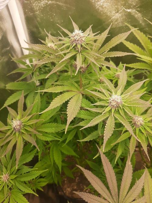 THEFROZEN710 Everything returned to normal with these girls. They recovered from a possible Mg overdose. They were all drinking pure water with a pH of 6.5, gradually increasing it to better absorb certain nutrients in their flora. There was no plan to add any mineral salts. I noticed an excellent response from them with the application of a biostimulant rich in enzymes, amino acids, and some algae and fish flours. It's important to understand that it has no nutritional effect; it merely causes mild, controlled stress and helps the plant metabolize faster and more efficiently. I took the opportunity to take out some clones of the most promising phenos and several Pure Glitter clones. I have the impression that I may have pulled a rare gem compared to other colleagues who received these same genetics and had no results. Many even killed their plants before flowering to save space. So, I've never seen a harvest from this genetics, and it is showing signs of anthocyanins in the veg.