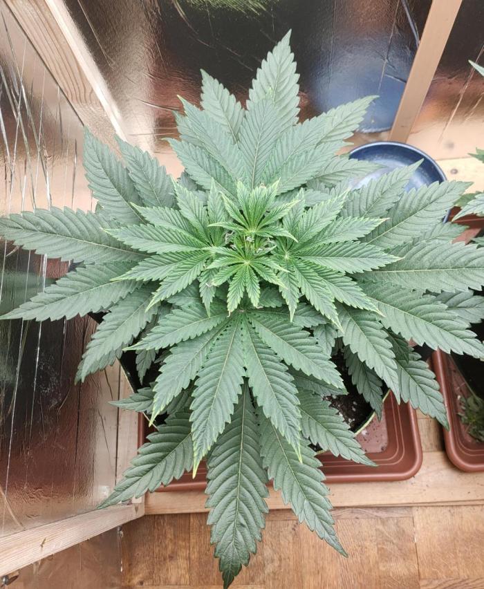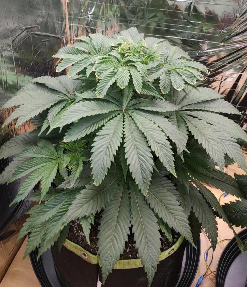 Growingape Welcome back, the plant looks nice and healthy and I will put her in bloom in a week, just waiting for the side branches to push through the upper leaf roof.