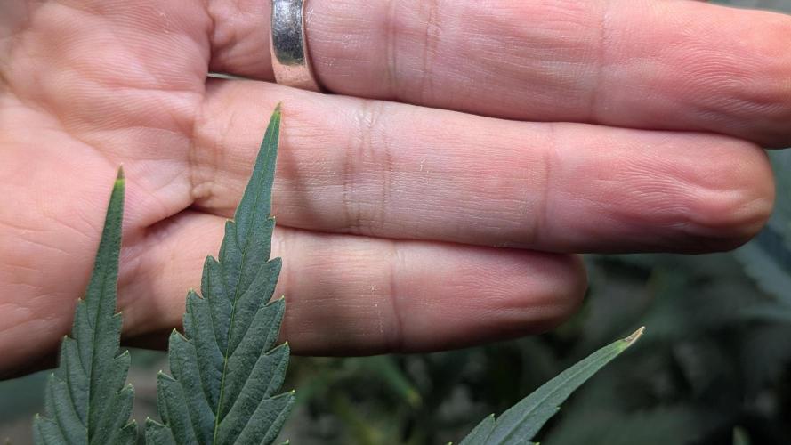 Some of her fan leafs are showing minimal burning at the tips. My interpretation is, that the microbial activity and thus the available nutrients in the soil are a little over the ideal range. Maybe I'm fooling myself into thinking that this is the case, because I don't want to deal with any problems right now, so if I don't see them, they don't exist. This is basically the homegrowers version of a child playing hide & seek by covering its eyes 😉